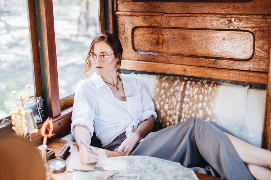 Solar powered and unique, Carriage 343 is still on original wheels, and rocks when you walk. With stunning rolling rural views one side and scribbly gums the other – it will take your breath away. Unique and quirky with fallow deer upholstery and an outdoor bath, experience a rustic eco-escape with a touch of old-world luxury.