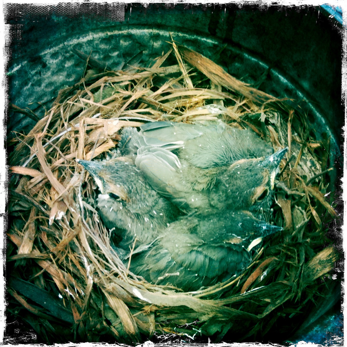 One of my favourite morning songs is that of the Grey Shrike Thrush – such a clear crisp voice – they always sound so happy. I was thrilled to discover that they are nesting in an old copper pot on the electrical box!