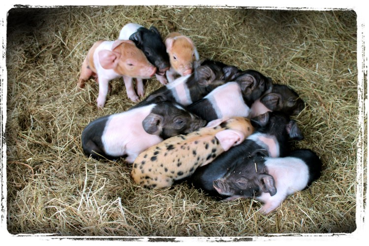 These porkies will look a lot less cute and a lot more trouble around early february – they’ll free range, graze and suckle til then with a supplementary diet of grain mix until they turn into solid, lean pork balls ready for market!